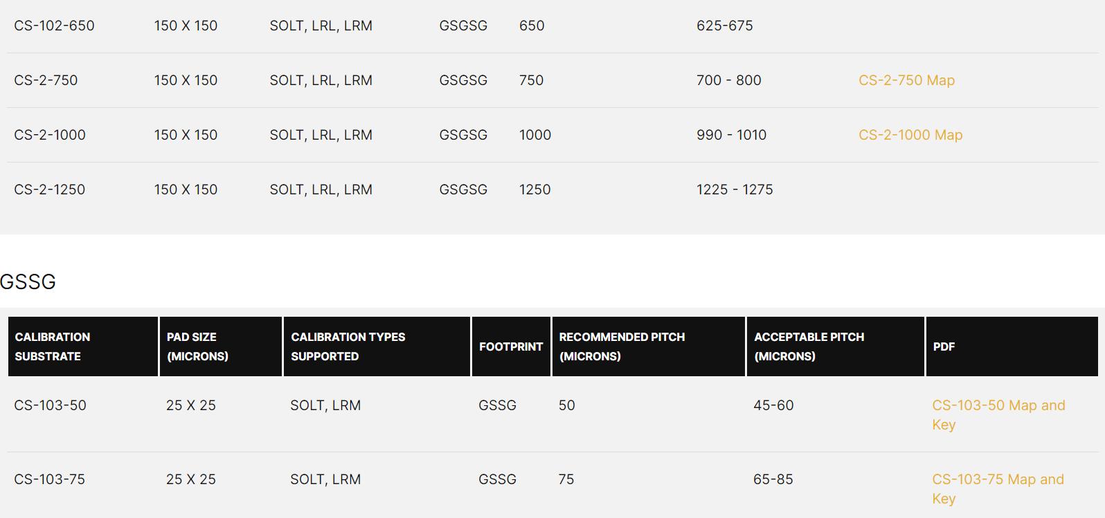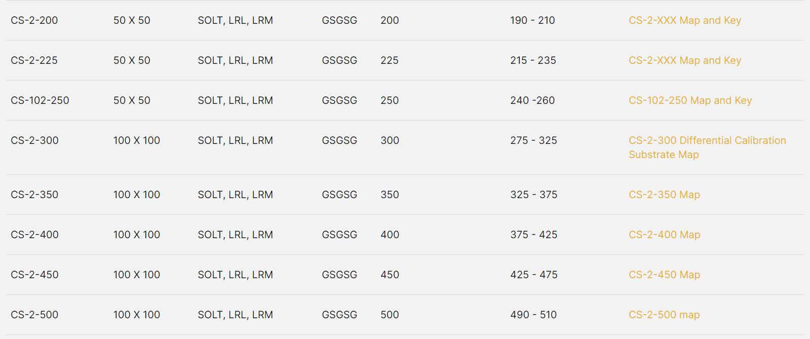 Calibration Substrates(Differential Calibration Substrate Selection Guide GSGSG)